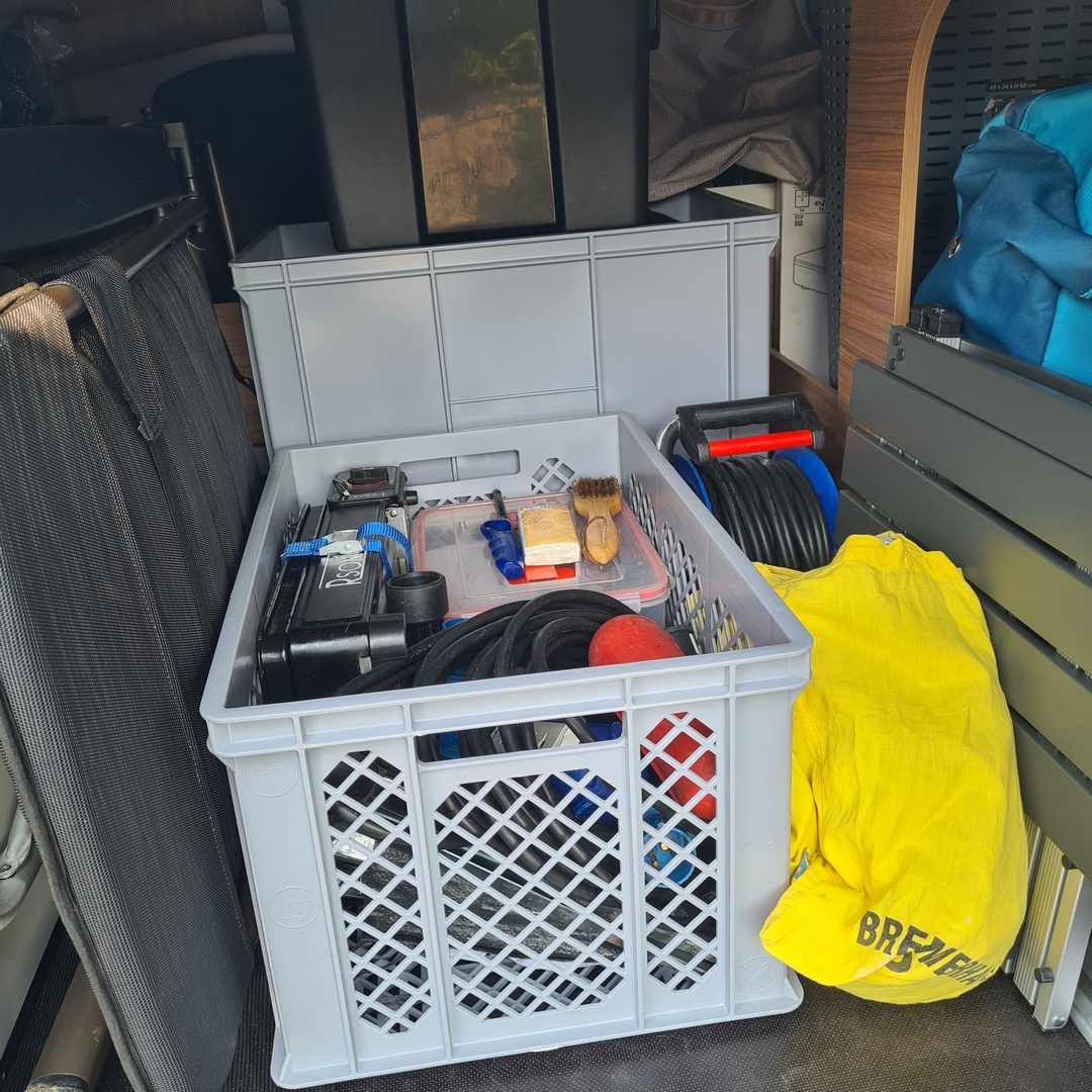 Moinsen Pepperonis aus dem Norden. Wir sind ja nicht so viele. Die MEG-Fahrer habe den Vorteil, dass sie eine große Garage haben. Wir MF-Fahrer den Vorteil eines geräumigen Wohnmobiles. Dafür aber eine gewöhnungsbedürftige Garage. Nach unserem Chausson haben wir im Herbst letzten Jahres unseren Pepper-MF bekommen. Habe hier - dank dieses Forums - viele gute Anregungen bekommen und bin jetzt eigentlich gut zufrieden mit dem Aufbau meiner Garage zufrieden. Vor unserem letzten Urlaub hatte ich noch das Problem unser sperriges SUP mit unterzubringen. Um anderen MF-Fahrern Anregungen mitzuteilen, habe ich mal ein paar Fotos gemacht. BILD-1 zeigt meine Garagentür. Habe oben und unten Airlineschienen angeklebt und eine Tasche für die Rampen befestigt. BILD-2 zeigt die Garage vom Fahrzeuginnenraum aus. Hier habe ich links 2 kleine Getränkekisten für 12 Flaschen. Rechts daneben eine kleine Heißluftfriteuse, auf der unser Kartoffel- und Zwiebelkorb steht. Daneben ein hoher Schmutzwäschekorb und davor eine Induktionskochplatte. BILD-3 zeigt die hintere Seite der Garage. Dort steht die Putzmittelkiste meiner Frau auf 2 Euroboxen. Auf den Euroboxen lassen sich die beiden Fußteile unserer Campingstühle plazieren. An der Hinterseite sind wieder Airlineschienen angebracht und Taschen daran befestigt. BILD-4 zeigt meine Garage nach dem Öffen. Links an der Wand liegt der Campingtisch und davor die beiden Stühle fest ohne anzubinden. Hinten habe ich quer eine Eurobox 40x60x30 und darüber eine Eurobox 40x60x20. Davor längs eine Eurobox 40x60x30 und oben drauf zwei Euroboxen 40x30x30. Rechts davon steht meine Kabeltrommel - ein kleiner Campingtisch ( super vom Ausstatter Camping Wa...) und unsere Fahrradplane. BILD-5 hier sieht man die beiden kleinen Euroboxen. In der ersten meine Markisenbefestigngstasche BILD-6 zeigt die beiden Airlineschienen links und rechts und zwei Spanngurte, wo maan zur Not auch noch etwas unterklemmen kann. BILD-7 die vordere untere Kisten mit Stromkabel - Gasgrill und Batterie- und Ersatzkiste BILD-8 nochmal die hinteren Euroboxen. Hinter den Boxen befindet sich darunter auch noch eine Ablagefläche. Dort habe wir unser Seitenteil der Markise - eine Strandmuschel - Federballspiel - eine Luftliege und eine abgepackte Plane für Notfälle. Rechts im Radkastenteil habe ich auf der linke Seite meine SUP-Tasche ohne Pumpe und Paddel deponiert, die obenauf liegen. Auf der rechten Seite eine Gießkanne und Wäschespinne für den Fahrradtrüger und dazwischen unten mein Werkzeugkasten und darauf meine Männerhandtasche (Platz für 10 Dosen Bier - lol ) . Im hinteren Bereich liegen noch 2 Fahrradpacktaschen mit Regenzeug. So - ich glaube, dass ich nichts mehr umpacken muß, wenn wir 4 Wochen loswollen. Hoffe ich konnte dem ein oder anderen ein paar Anregungen geben Es grüßt der Holgi aus dem Biberort Moinsen Pepperonis aus dem Norden. Wir sind ja nicht so viele. Die MEG-Fahrer habe den Vorteil, dass sie eine große Garage haben. Wir MF-Fahrer den Vorteil eines geräumigen Wohnmobiles. Dafür aber eine gewöhnungsbedürftige Garage. Nach unserem Chausson haben wir im Herbst letzten Jahres unseren Pepper-MF bekommen. Habe hier - dank dieses Forums - viele gute Anregungen bekommen und bin jetzt eigentlich gut zufrieden mit dem Aufbau meiner Garage zufrieden. Vor unserem letzten Urlaub hatte ich noch das Problem unser sperriges SUP mit unterzubringen. Um anderen MF-Fahrern Anregungen mitzuteilen, habe ich mal ein paar Fotos gemacht. BILD-1 zeigt meine Garagentür. Habe oben und unten Airlineschienen angeklebt und eine Tasche für die Rampen befestigt. BILD-2 zeigt die Garage vom Fahrzeuginnenraum aus. Hier habe ich links 2 kleine Getränkekisten für 12 Flaschen. Rechts daneben eine kleine Heißluftfriteuse, auf der unser Kartoffel- und Zwiebelkorb steht. Daneben ein hoher Schmutzwäschekorb und davor eine Induktionskochplatte. BILD-3 zeigt die hintere Seite der Garage. Dort steht die Putzmittelkiste meiner Frau auf 2 Euroboxen. Auf den Euroboxen lassen sich die beiden Fußteile unserer Campingstühle plazieren. An der Hinterseite sind wieder Airlineschienen angebracht und Taschen daran befestigt. BILD-4 zeigt meine Garage nach dem Öffen. Links an der Wand liegt der Campingtisch und davor die beiden Stühle fest ohne anzubinden. Hinten habe ich quer eine Eurobox 40x60x30 und darüber eine Eurobox 40x60x20. Davor längs eine Eurobox 40x60x30 und oben drauf zwei Euroboxen 40x30x30. Rechts davon steht meine Kabeltrommel - ein kleiner Campingtisch ( super vom Ausstatter Camping Wa...) und unsere Fahrradplane. BILD-5 hier sieht man die beiden kleinen Euroboxen. In der ersten meine Markisenbefestigngstasche BILD-6 zeigt die beiden Airlineschienen links und rechts und zwei Spanngurte, wo maan zur Not auch noch etwas unterklemmen kann. BILD-7 die vordere untere Kisten mit Stromkabel - Gasgrill und Batterie- und Ersatzkiste BILD-8 nochmal die hinteren Euroboxen. Hinter den Boxen befindet sich darunter auch noch eine Ablagefläche. Dort habe wir unser Seitenteil der Markise - eine Strandmuschel - Federballspiel - eine Luftliege und eine abgepackte Plane für Notfälle. Rechts im Radkastenteil habe ich auf der linke Seite meine SUP-Tasche ohne Pumpe und Paddel deponiert, die obenauf liegen. Auf der rechten Seite eine Gießkanne und Wäschespinne für den Fahrradtrüger und dazwischen unten mein Werkzeugkasten und darauf meine Männerhandtasche (Platz für 10 Dosen Bier - lol ) . Im hinteren Bereich liegen noch 2 Fahrradpacktaschen mit Regenzeug. So - ich glaube, dass ich nichts mehr umpacken muß, wenn wir 4 Wochen loswollen. Hoffe ich konnte dem ein oder anderen ein paar Anregungen geben Es grüßt der Holgi aus dem Biberort Lieber Holgi, zum Ergänzen eines Beitrags muss man keinen neuen Beitrag erstellen. Nur antworten! Lieber Holgi, zum Ergänzen eines Beitrags muss man keinen neuen Beitrag erstellen. Nur antworten!GARAGE PEPPER MF