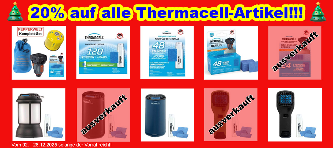 Hallo Zusammen, wir wollen Euch unser erstes Weihnachtsangebot unterbreiten! Es handelt sich dabei um den für uns einzige wirksame Mückenschutz von Thermacell für den Außenbereich. Die meisten dürften dieses Produkte schon kennen und haben sie sicherlich schon schätzen gelernt. Ich selbst verwende Thermacell schon seit mehreren Jahren und bin noch so begeistert, wie am ersten Tag. In diesem Sommer waren aufgrund der hohen Nachfrage die meisten Produkte von Thermacell schon Ende Juli fast bundesweit ausverkauft. Wir haben alles daran gesetzt, um uns immer mit genügend "Material" einzudecken. Deshalb können wir Euch, auch wenn es Winter ist und momentan niemand Mückenschutz braucht, noch reichlich vorhandene Artikel mit 20% Rabatt im Weihnachtsangebot anbieten. Ihr werdet diese Artikel nirgends billiger bekommen, da wir sie Euch fast zum Einkaufspreis anbieten. Damit seid Ihr für die nächste Saison bestens vorbereitet! Wie Ihr wisst finanzieren wir über Pepperwelt unser Forum my-pepper.de. Deshalb würden wir uns über zahlreiche Bestellungen sehr freuen. Die ersten Angebote sind schon ausverkauft! Die Aktion läuft bis zum 28.12.2025 und so lange der Vorrat reicht. Weitere Weihnachtsangebote werden noch folgen! Danke für Eure Unterstützung, Gruß Kai Hallo Zusammen, wir wollen Euch unser erstes Weihnachtsangebot unterbreiten! Es handelt sich dabei um den für uns einzige wirksame Mückenschutz von Thermacell für den Außenbereich. Die meisten dürften dieses Produkte schon kennen und haben sie sicherlich schon schätzen gelernt. Ich selbst verwende Thermacell schon seit mehreren Jahren und bin noch so begeistert, wie am ersten Tag. In diesem Sommer waren aufgrund der hohen Nachfrage die meisten Produkte von Thermacell schon Ende Juli fast bundesweit ausverkauft. Wir haben alles daran gesetzt, um uns immer mit genügend "Material" einzudecken. Deshalb können wir Euch, auch wenn es Winter ist und momentan niemand Mückenschutz braucht, noch reichlich vorhandene Artikel mit 20% Rabatt im Weihnachtsangebot anbieten. Ihr werdet diese Artikel nirgends billiger bekommen, da wir sie Euch fast zum Einkaufspreis anbieten. Damit seid Ihr für die nächste Saison bestens vorbereitet! Wie Ihr wisst finanzieren wir über Pepperwelt unser Forum my-pepper.de. Deshalb würden wir uns über zahlreiche Bestellungen sehr freuen. Die ersten Angebote sind schon ausverkauft! Die Aktion läuft bis zum 28.12.2025 und so lange der Vorrat reicht. Weitere Weihnachtsangebote werden noch folgen! Danke für Eure Unterstützung, Gruß Kai Ein weiteres TOP-Angebot! Unser sehr beliebter Tisch-Grill, mit beschichteter Plancha, Grillplatte und Glasdeckel in einem robusten Transportkoffer. Mit im Set sind 3 zusätzliche Gaskartuschen enthalten. Einfach loslegen und das auch im Winter. Zu dem Grill gibts noch einen Extra-Thread, indem Ihr Euch informieren könnt. Da erfahrt Ihr unter anderem zu was man den Grill alles verwenden kann. Einfach lecker.... 40% Rabatt sind der Hit.... ZMC 2-in-1 Gaskocher & Gasgrill, 2,1 kW + 3 Gaskartuschen 227g!! So lange der Vorrat reicht! Gruß Kai Ein weiteres TOP-Angebot! Unser sehr beliebter Tisch-Grill, mit beschichteter Plancha, Grillplatte und Glasdeckel in einem robusten Transportkoffer. Mit im Set sind 3 zusätzliche Gaskartuschen enthalten. Einfach loslegen und das auch im Winter. Zu dem Grill gibts noch einen Extra-Thread, indem Ihr Euch informieren könnt. Da erfahrt Ihr unter anderem zu was man den Grill alles verwenden kann. Einfach lecker.... 40% Rabatt sind der Hit.... ZMC 2-in-1 Gaskocher & Gasgrill, 2,1 kW + 3 Gaskartuschen 227g!! So lange der Vorrat reicht! Gruß Kai Noch ein Angebot!! Das selbstreinigende Putztuch aus feinsten Holzfasern von dem deutschen Hersteller PUZZFUXX®. Wir bieten Euch das Haushalts-Bundle zu einem unschlagbaren Preis! 1 x Reinigungstuch Noch ein Angebot!! Das selbstreinigende Putztuch aus feinsten Holzfasern von dem deutschen Hersteller PUZZFUXX®. Wir bieten Euch das Haushalts-Bundle zu einem unschlagbaren Preis! 1 x Reinigungstuch ....einer geht noch! ....einer geht noch! und zu guter letzt ... und zu guter letzt ... Wir haben auch bei den eScootern von ePowerFun eine Aktion. Beim Kauf eines ePF-2 PRO oder ePF-PULSE+ legen wir Euch eine Elektro-Pumpe im Wert von 49,90 Euro GRATIS mit dazu! Wir haben auch bei den eScootern von ePowerFun eine Aktion. Beim Kauf eines ePF-2 PRO oder ePF-PULSE+ legen wir Euch eine Elektro-Pumpe im Wert von 49,90 Euro GRATIS mit dazu!Tolle Weihnachtsangebote bei PEPPERWELT!! (bspw. Thermacell, Forster LiFePo4, PUZZFUXX, ZMC Tischgrill, eScooter)